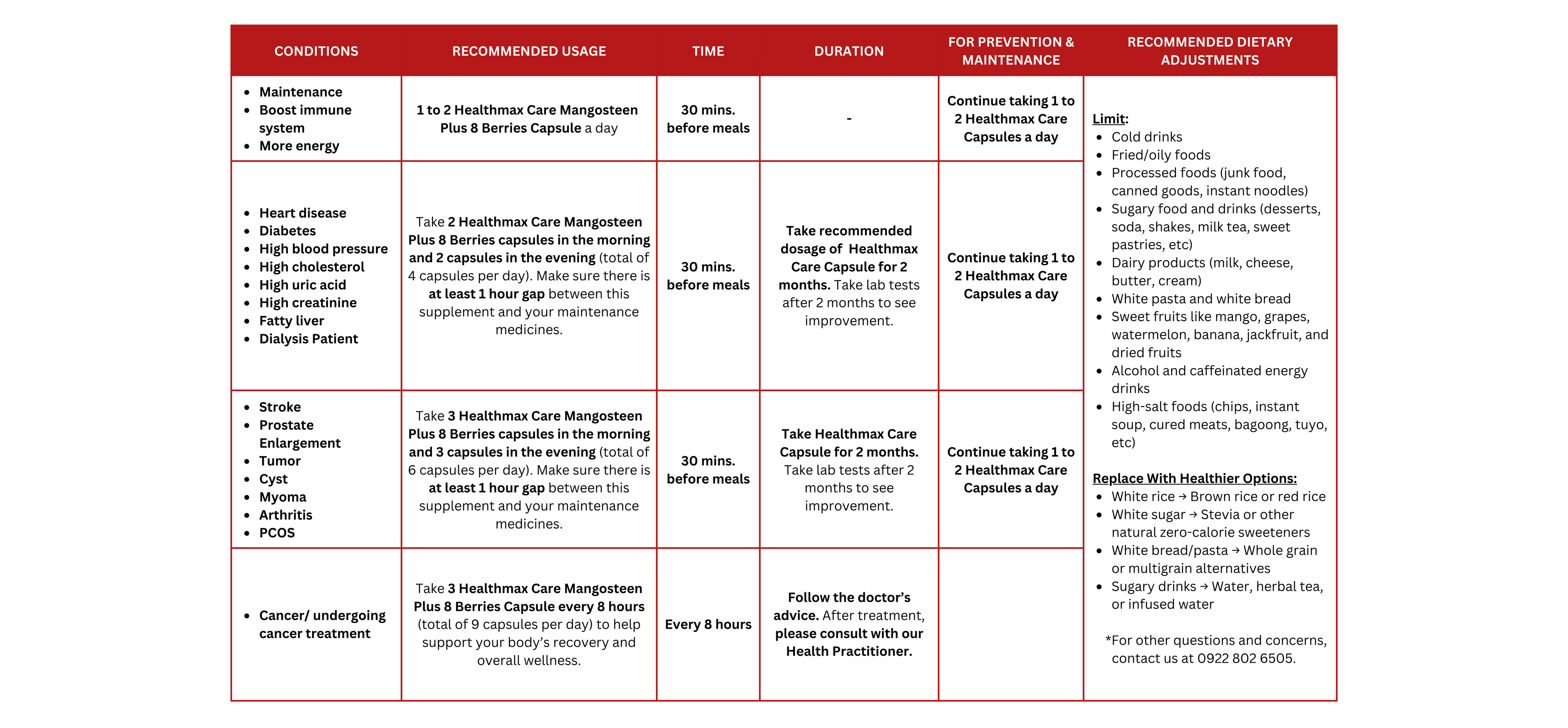 Recommended Use of Healthmax Care Mangosteen Plus 8 Berries: